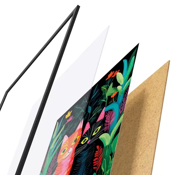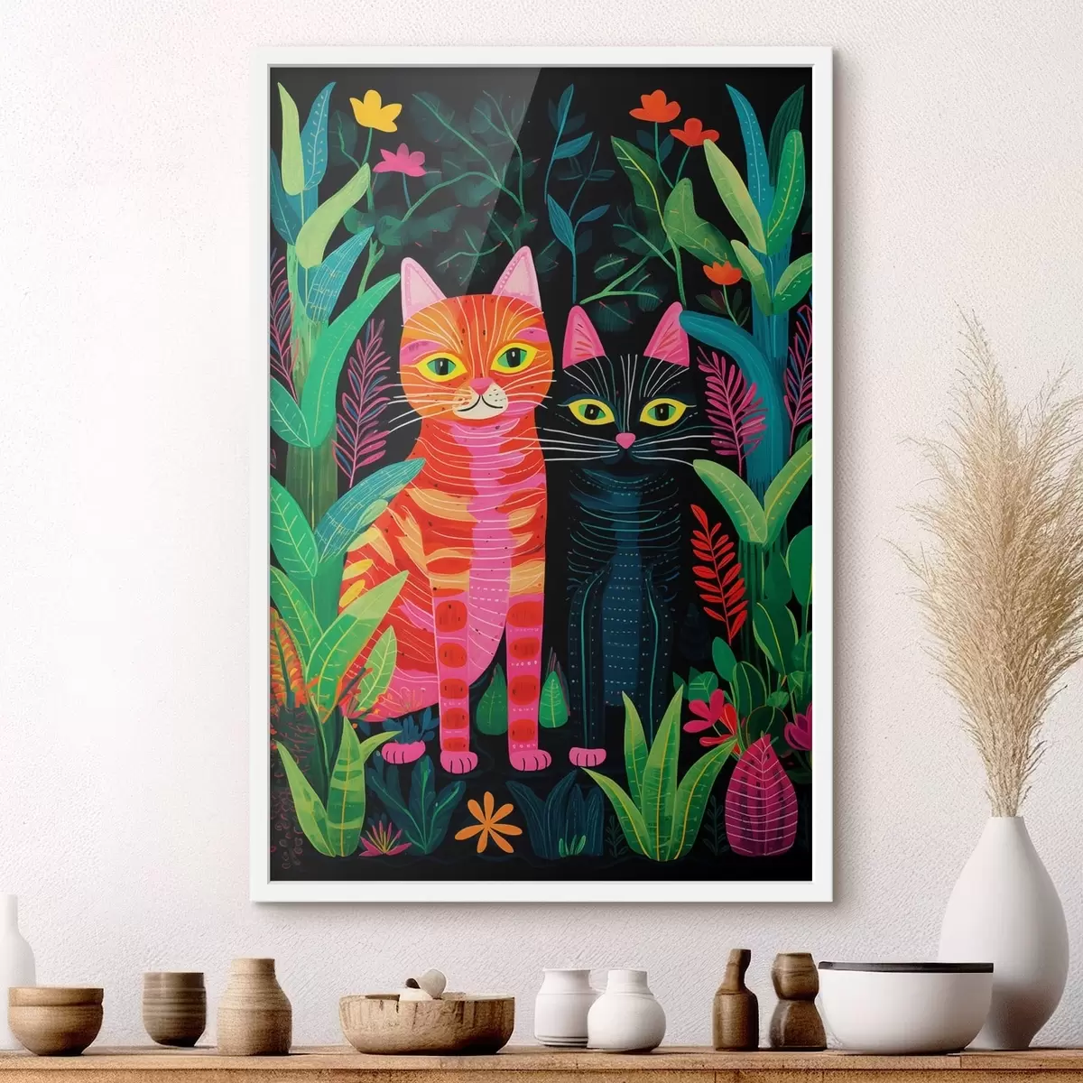 Poster Deux chats stylisés parmi des plantes aux couleurs vives Nr f47298