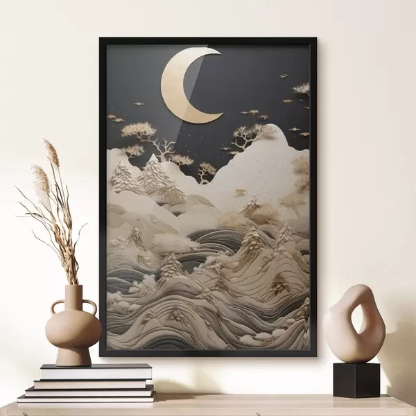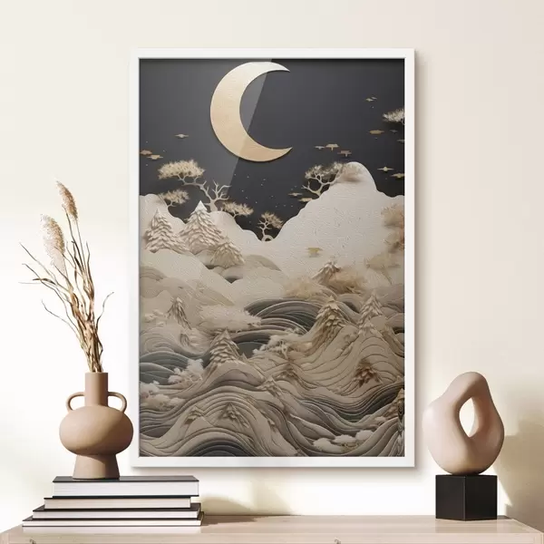 Poster Montagnes et arbres stylisés sous la lune Nr f47300
