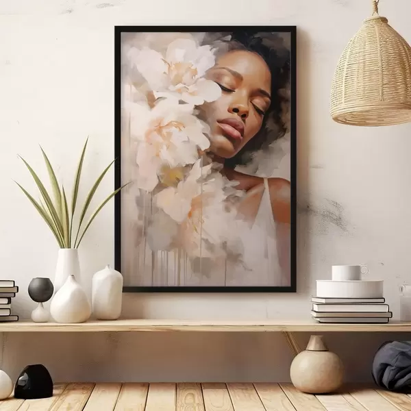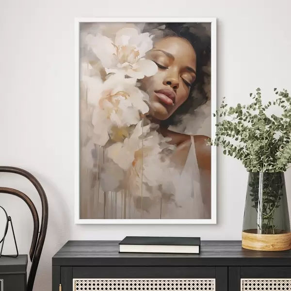 Poster Portrait de femme à côté de grandes fleurs Nr f47307