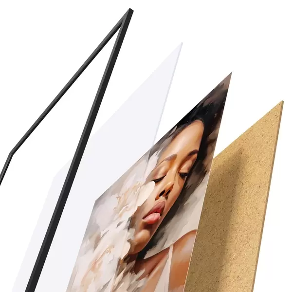 L’affiche encadrée est composée d’un cadre, d’un plexiglas, d’une image imprimée et d’un support en aggloméré. Elle est prête à être accrochée au mur grâce aux fixations situées à l’arrière.