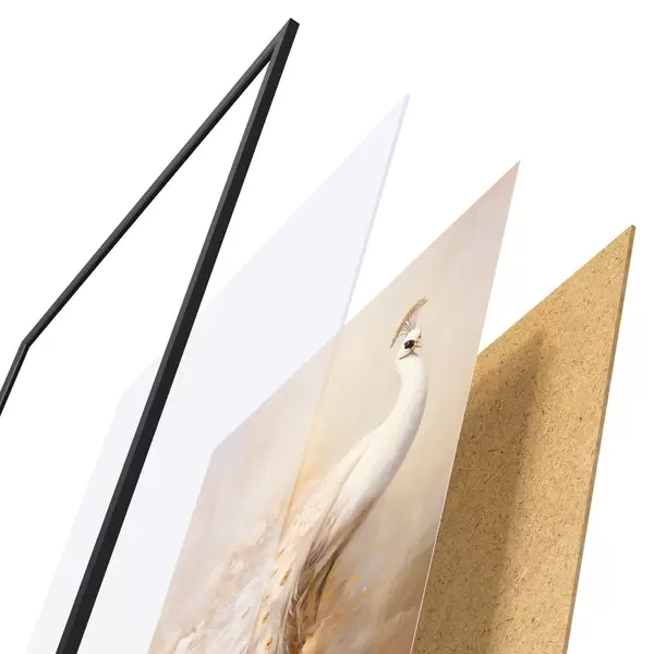 L’affiche encadrée est composée d’un cadre, d’un plexiglas, d’une image imprimée et d’un support en aggloméré. Elle est prête à être accrochée au mur grâce aux fixations situées à l’arrière.