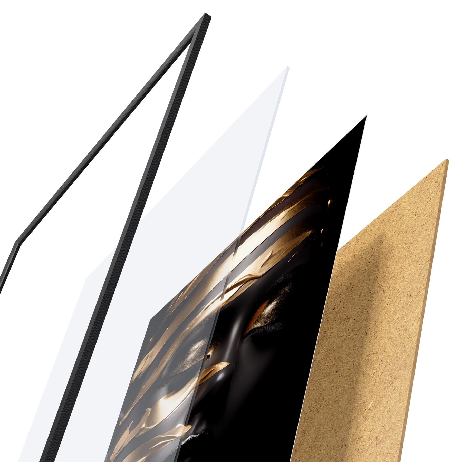 L’affiche encadrée est composée d’un cadre, d’un plexiglas, d’une image imprimée et d’un support en aggloméré. Elle est prête à être accrochée au mur grâce aux fixations situées à l’arrière.