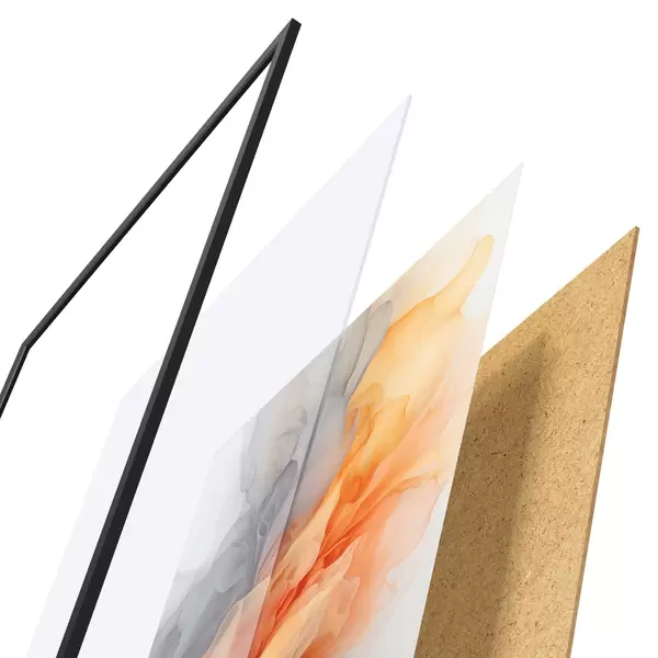 L’affiche encadrée est composée d’un cadre, d’un plexiglas, d’une image imprimée et d’un support en aggloméré. Elle est prête à être accrochée au mur grâce aux fixations situées à l’arrière.