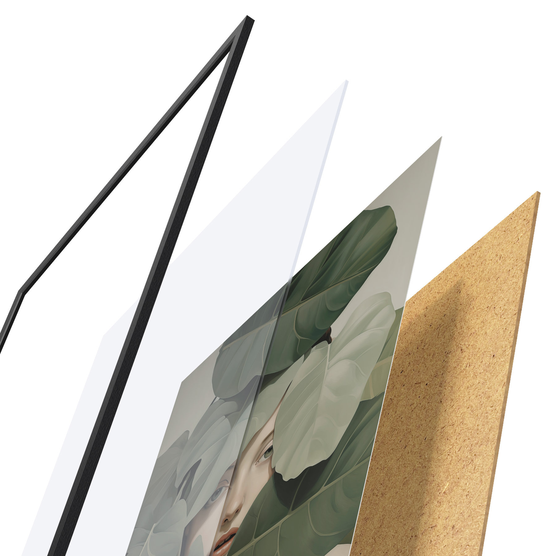 L’affiche encadrée est composée d’un cadre, d’un plexiglas, d’une image imprimée et d’un support en aggloméré. Elle est prête à être accrochée au mur grâce aux fixations situées à l’arrière.