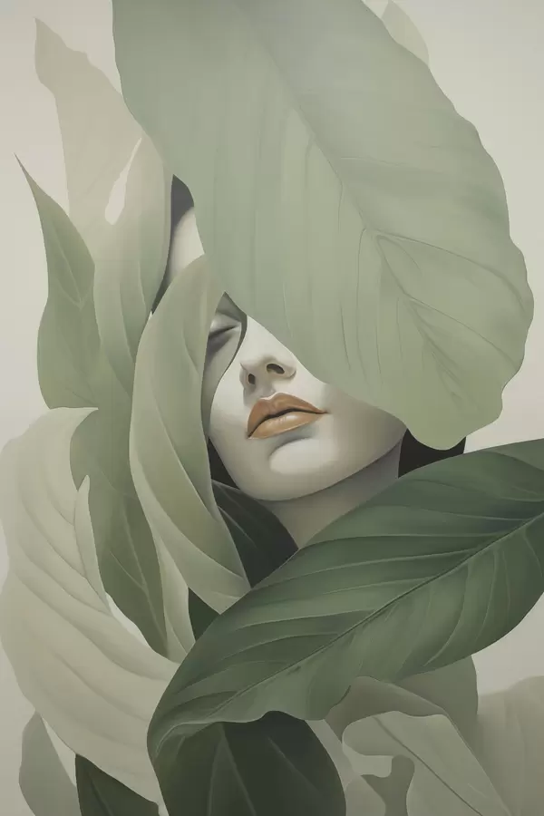 Poster Portrait surréaliste d'une jeune fille dans le feuillage f47332