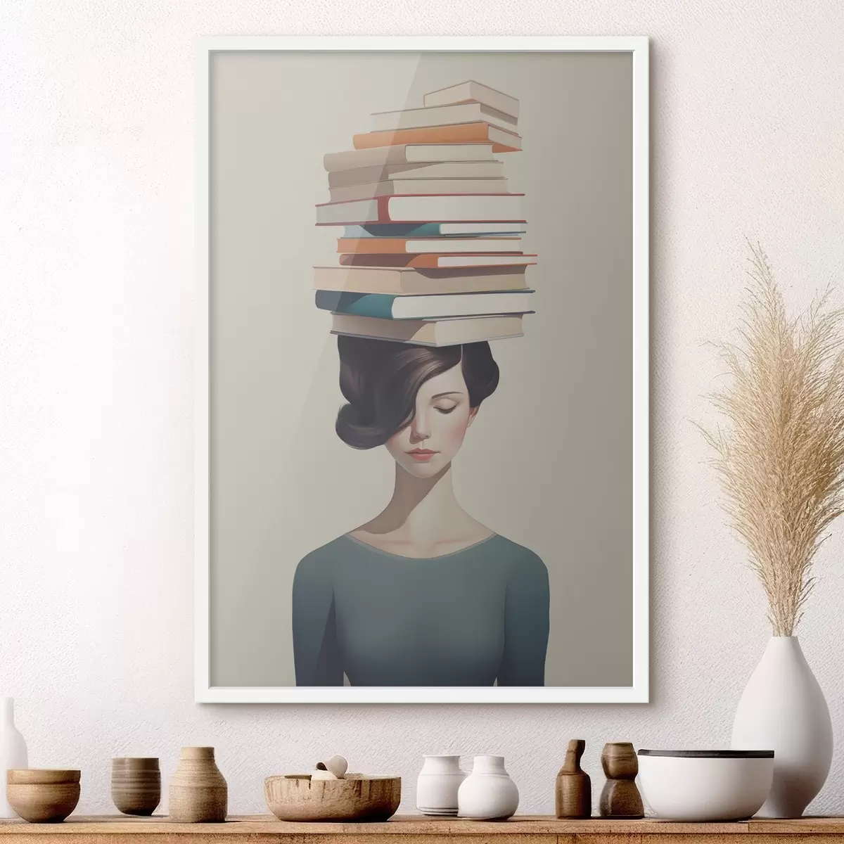 Poster Portrait surréaliste d'une fille avec des livres f47334