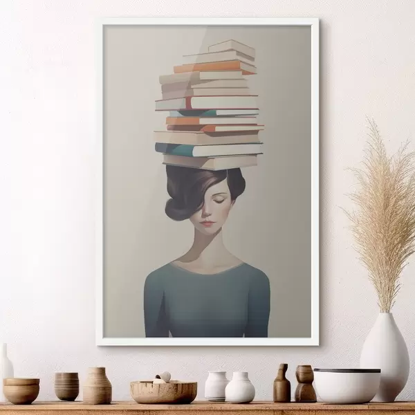 Poster Portrait surréaliste d'une fille avec des livres Nr f47334
