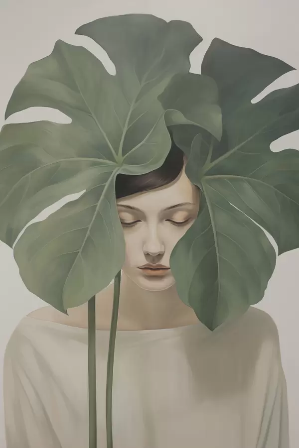 Poster Fille avec des feuilles tropicales Nr f47335
