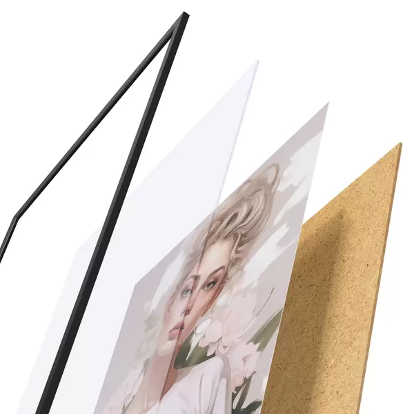 L’affiche encadrée est composée d’un cadre, d’un plexiglas, d’une image imprimée et d’un support en aggloméré. Elle est prête à être accrochée au mur grâce aux fixations situées à l’arrière.