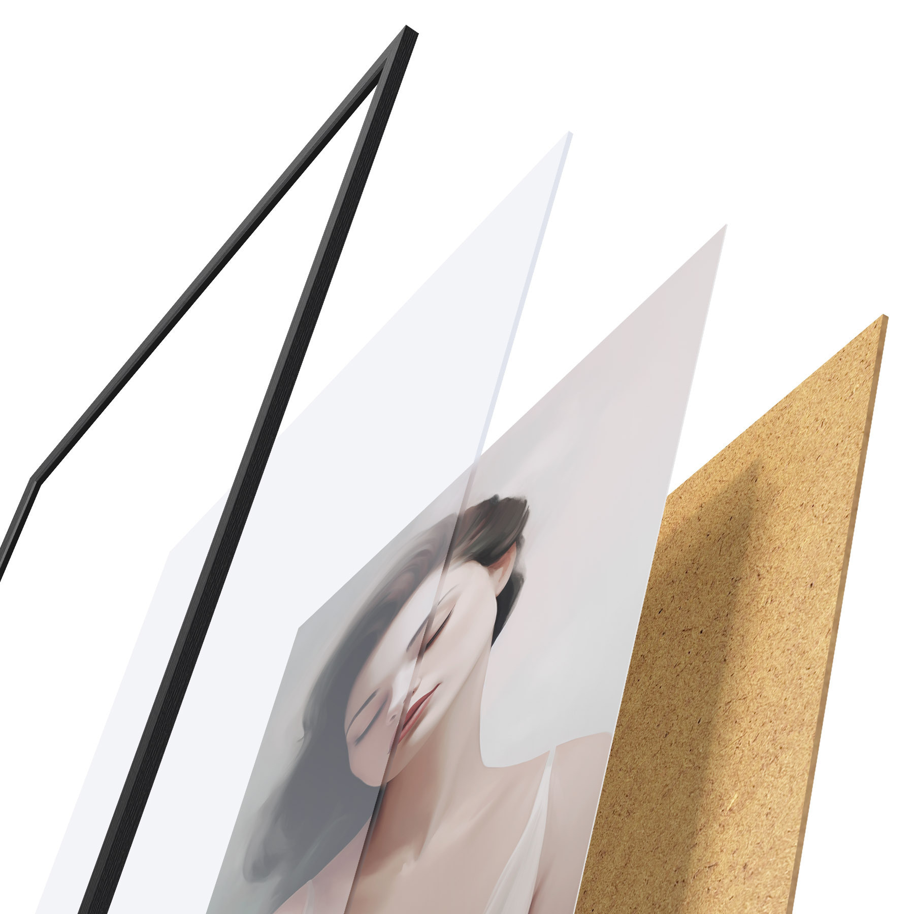 L’affiche encadrée est composée d’un cadre, d’un plexiglas, d’une image imprimée et d’un support en aggloméré. Elle est prête à être accrochée au mur grâce aux fixations situées à l’arrière.