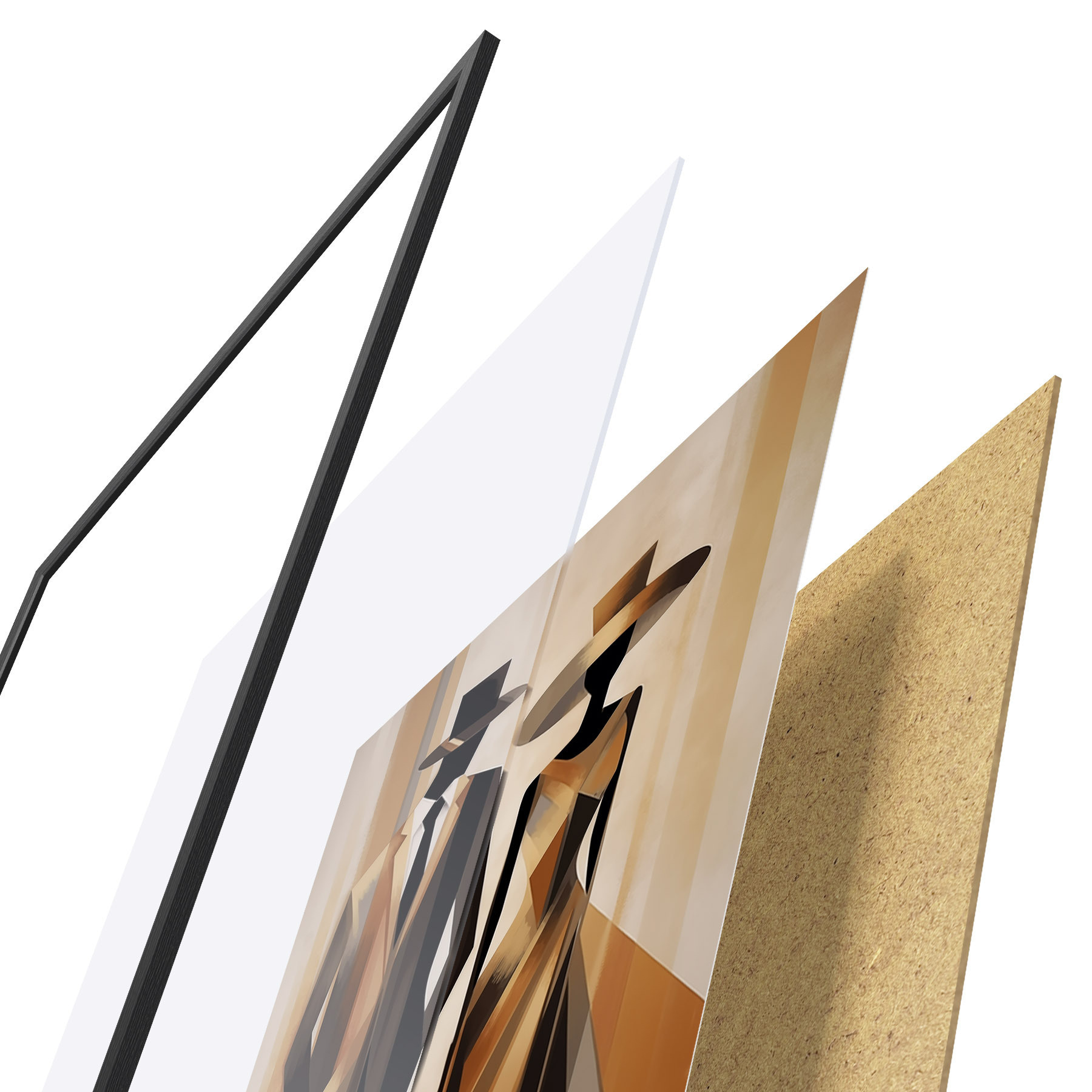 L’affiche encadrée est composée d’un cadre, d’un plexiglas, d’une image imprimée et d’un support en aggloméré. Elle est prête à être accrochée au mur grâce aux fixations situées à l’arrière.