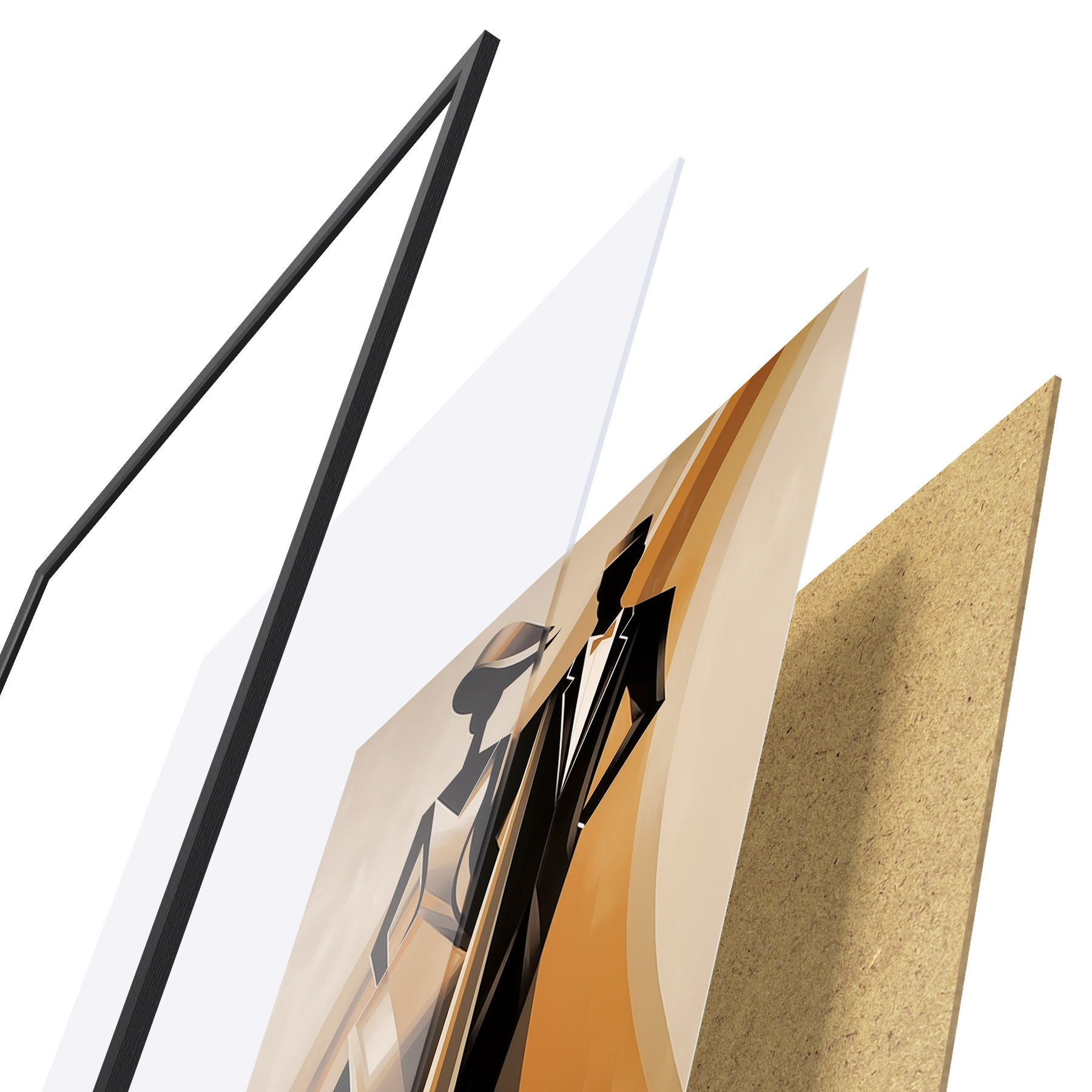 L’affiche encadrée est composée d’un cadre, d’un plexiglas, d’une image imprimée et d’un support en aggloméré. Elle est prête à être accrochée au mur grâce aux fixations situées à l’arrière.