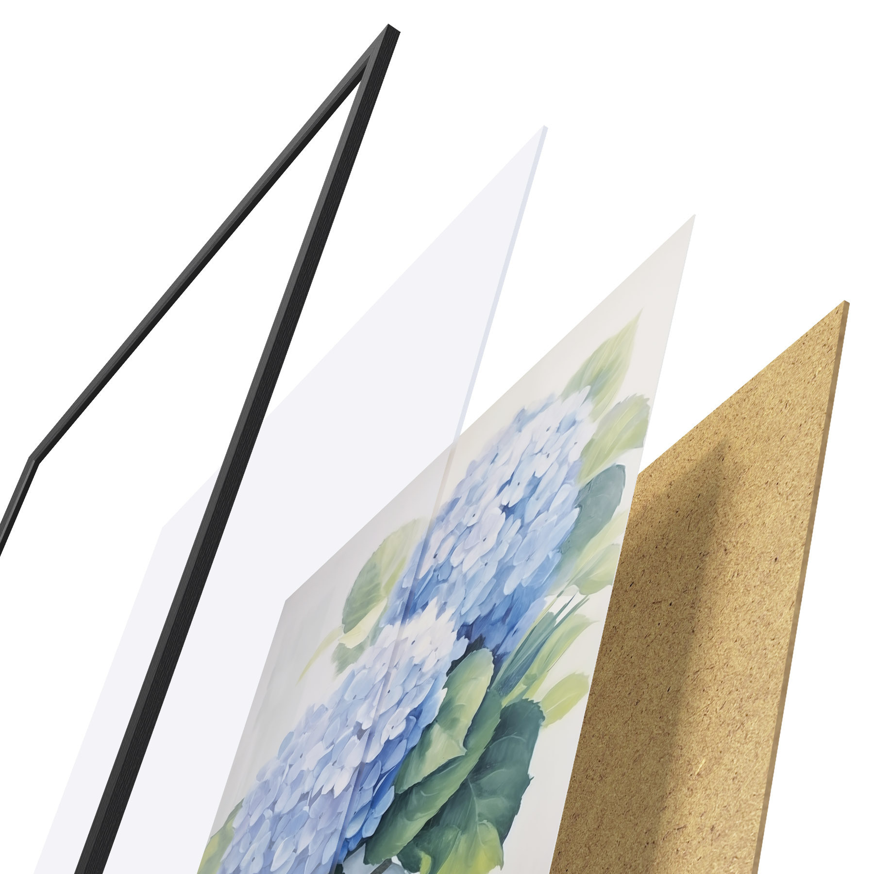 L’affiche encadrée est composée d’un cadre, d’un plexiglas, d’une image imprimée et d’un support en aggloméré. Elle est prête à être accrochée au mur grâce aux fixations situées à l’arrière.
