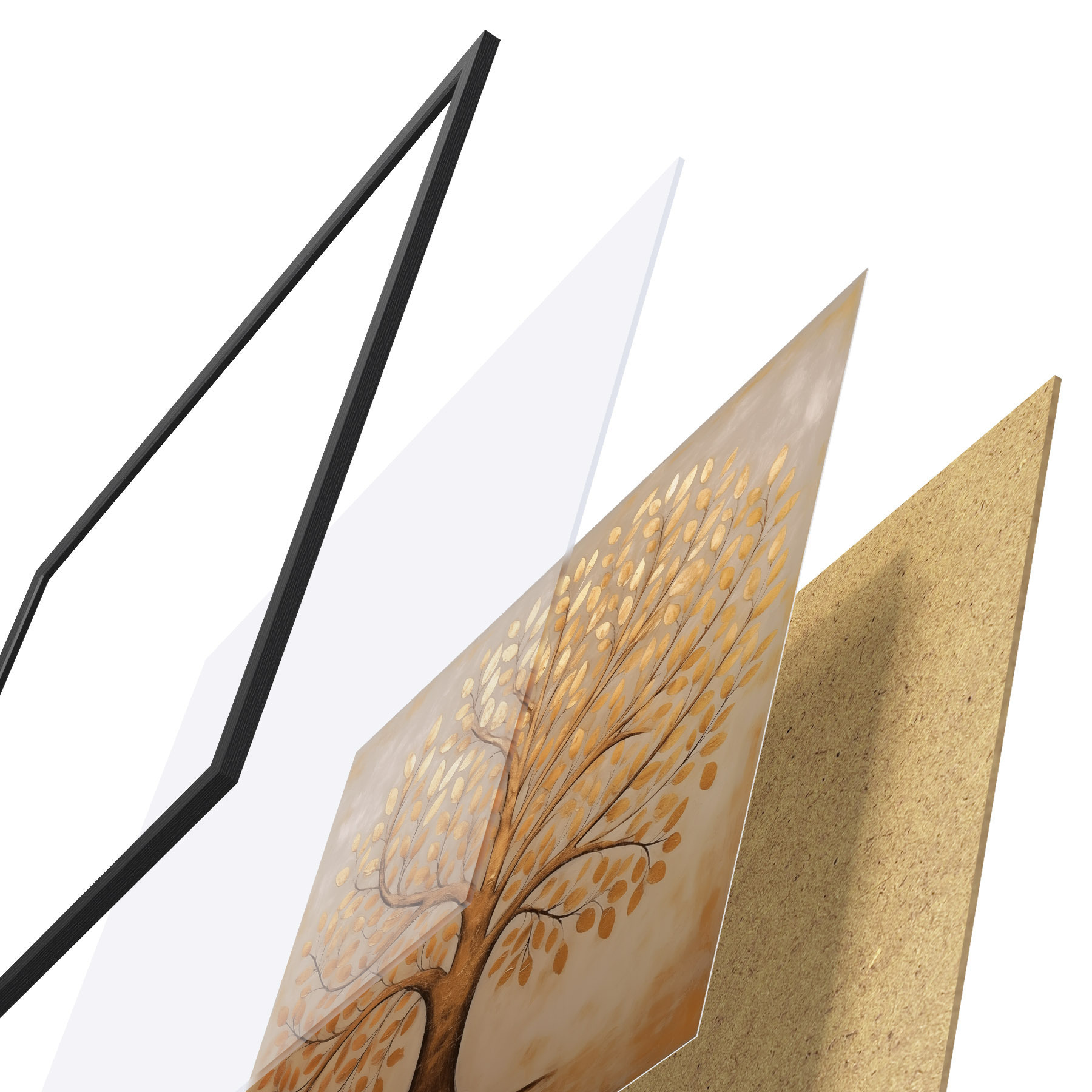 L’affiche encadrée est composée d’un cadre, d’un plexiglas, d’une image imprimée et d’un support en aggloméré. Elle est prête à être accrochée au mur grâce aux fixations situées à l’arrière.