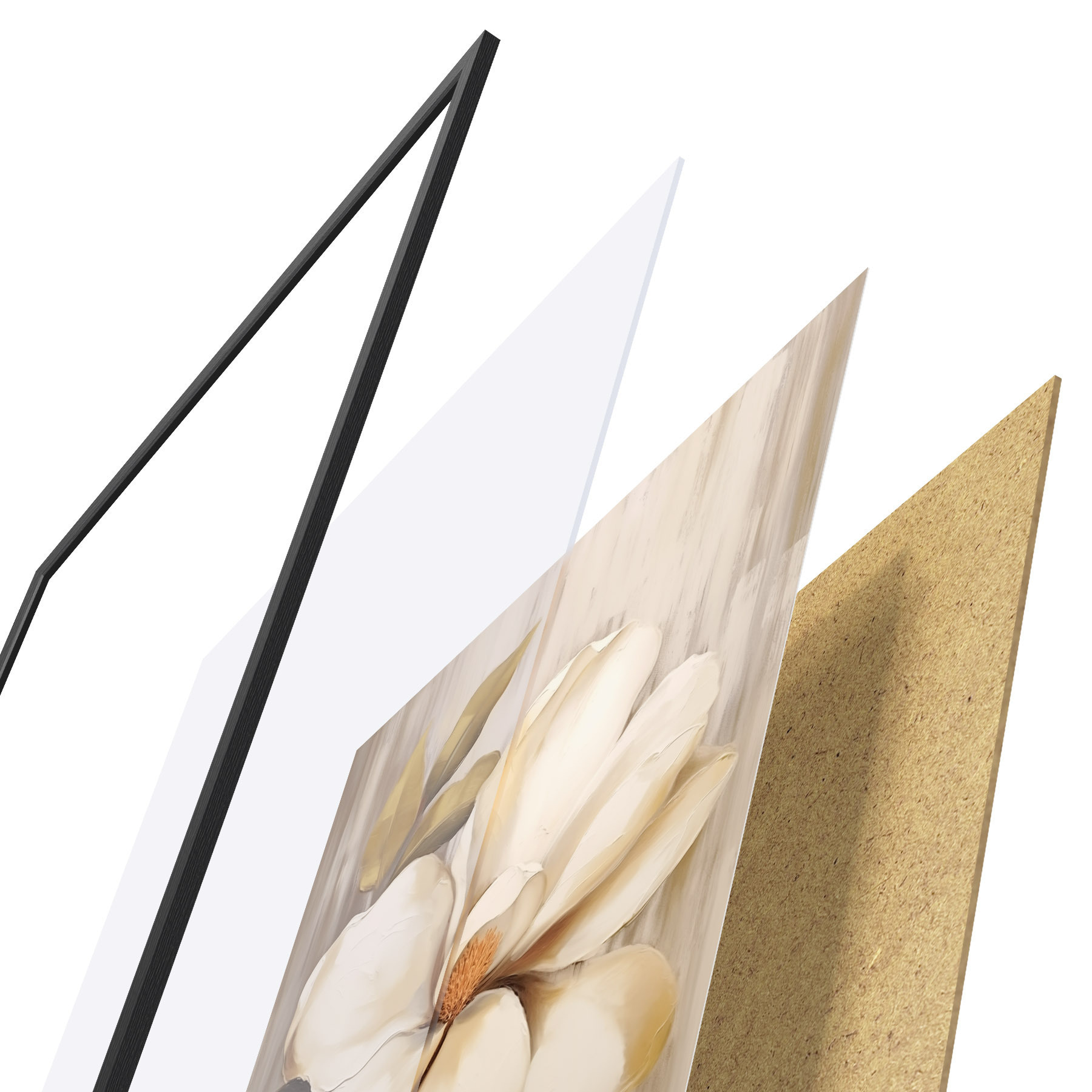 L’affiche encadrée est composée d’un cadre, d’un plexiglas, d’une image imprimée et d’un support en aggloméré. Elle est prête à être accrochée au mur grâce aux fixations situées à l’arrière.