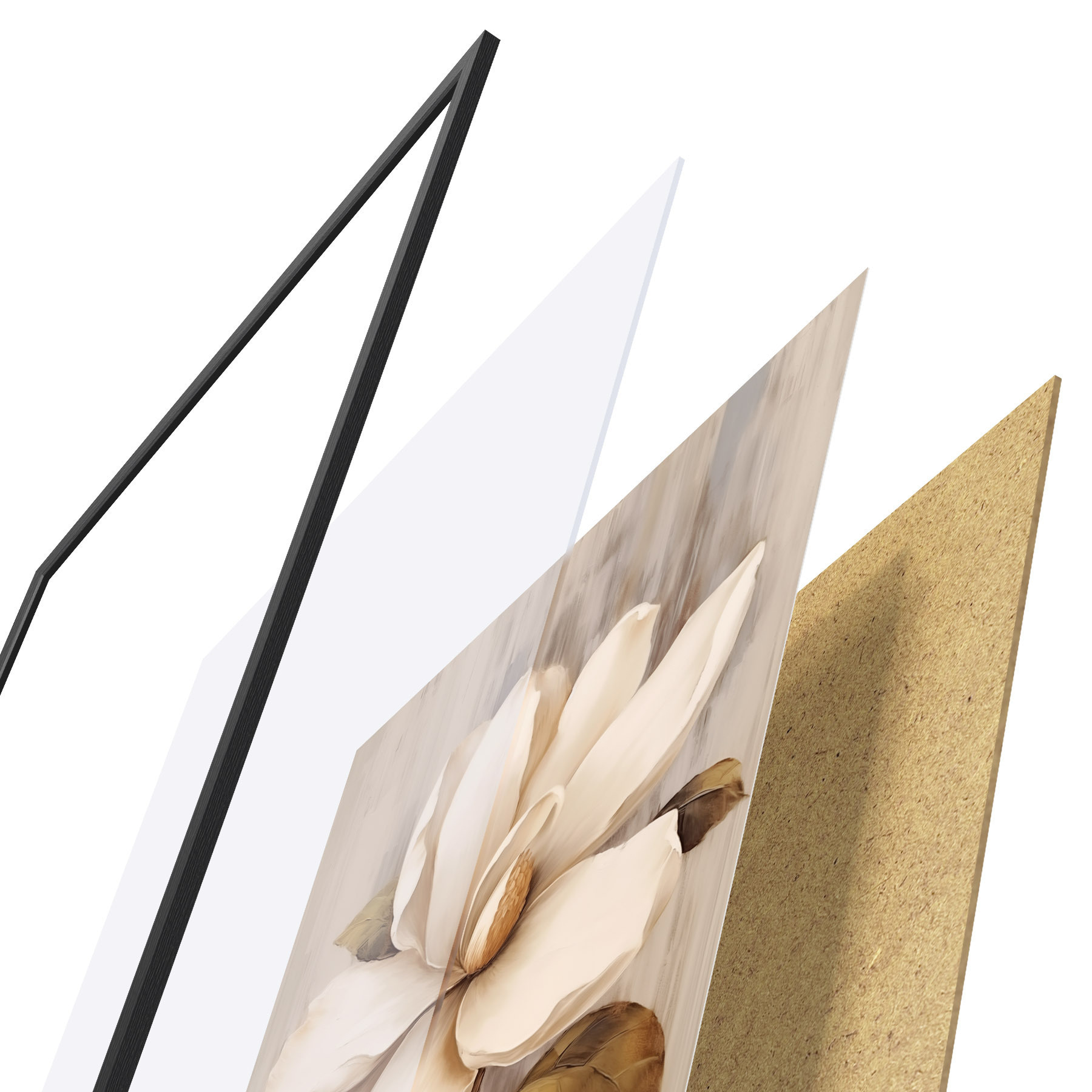 L’affiche encadrée est composée d’un cadre, d’un plexiglas, d’une image imprimée et d’un support en aggloméré. Elle est prête à être accrochée au mur grâce aux fixations situées à l’arrière.
