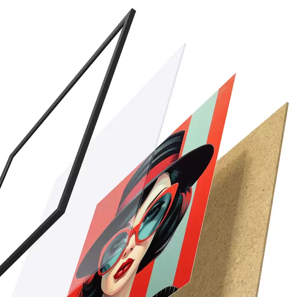 L’affiche encadrée est composée d’un cadre, d’un plexiglas, d’une image imprimée et d’un support en aggloméré. Elle est prête à être accrochée au mur grâce aux fixations situées à l’arrière.