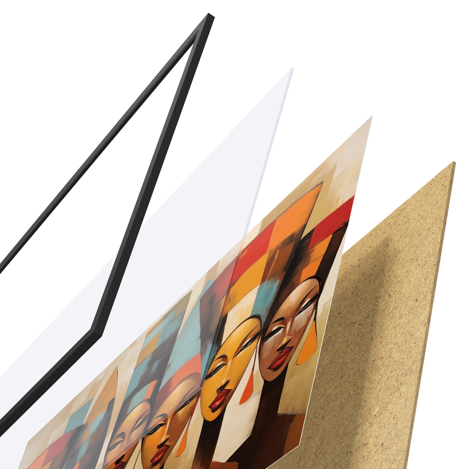 L’affiche encadrée est composée d’un cadre, d’un plexiglas, d’une image imprimée et d’un support en aggloméré. Elle est prête à être accrochée au mur grâce aux fixations situées à l’arrière.