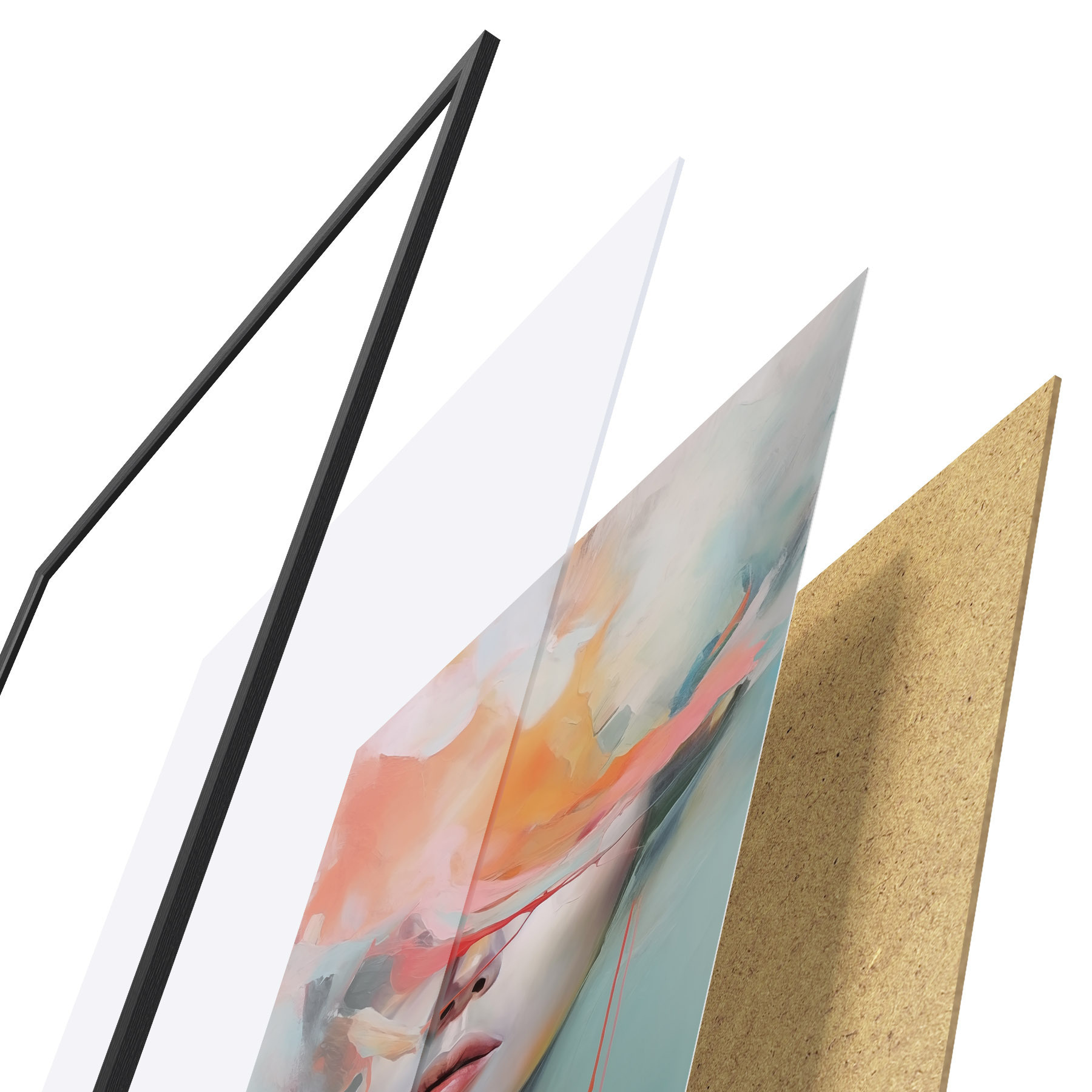 L’affiche encadrée est composée d’un cadre, d’un plexiglas, d’une image imprimée et d’un support en aggloméré. Elle est prête à être accrochée au mur grâce aux fixations situées à l’arrière.