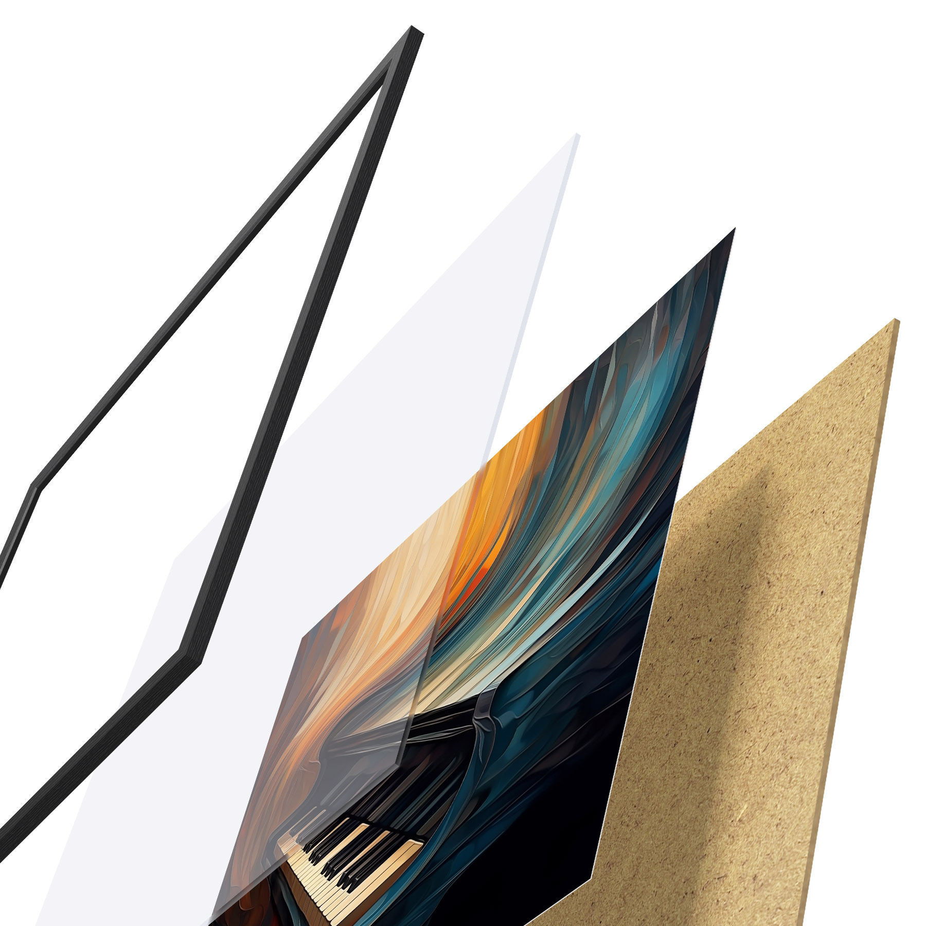 L’affiche encadrée est composée d’un cadre, d’un plexiglas, d’une image imprimée et d’un support en aggloméré. Elle est prête à être accrochée au mur grâce aux fixations situées à l’arrière.