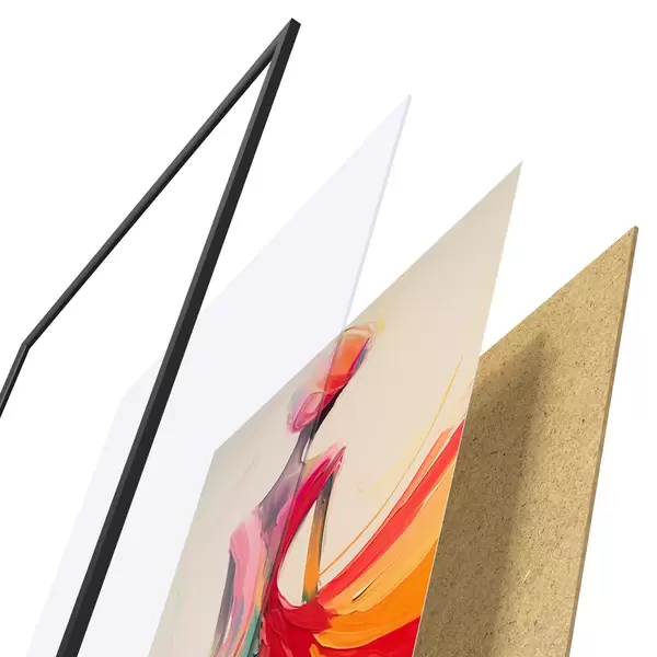 L’affiche encadrée est composée d’un cadre, d’un plexiglas, d’une image imprimée et d’un support en aggloméré. Elle est prête à être accrochée au mur grâce aux fixations situées à l’arrière.