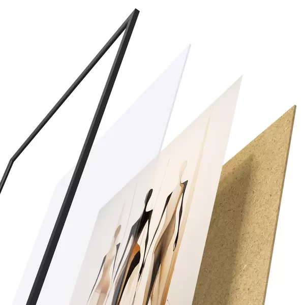 L’affiche encadrée est composée d’un cadre, d’un plexiglas, d’une image imprimée et d’un support en aggloméré. Elle est prête à être accrochée au mur grâce aux fixations situées à l’arrière.