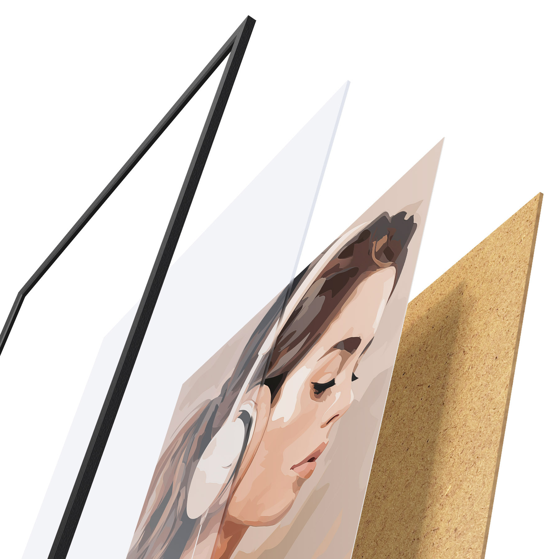 L’affiche encadrée est composée d’un cadre, d’un plexiglas, d’une image imprimée et d’un support en aggloméré. Elle est prête à être accrochée au mur grâce aux fixations situées à l’arrière.