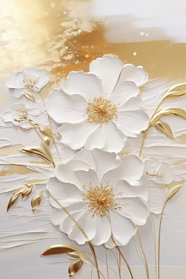 Poster Fleurs blanches rehaussées de touches jaunes et feuilles délicates sur fond texturé, art moderne Nr f47415