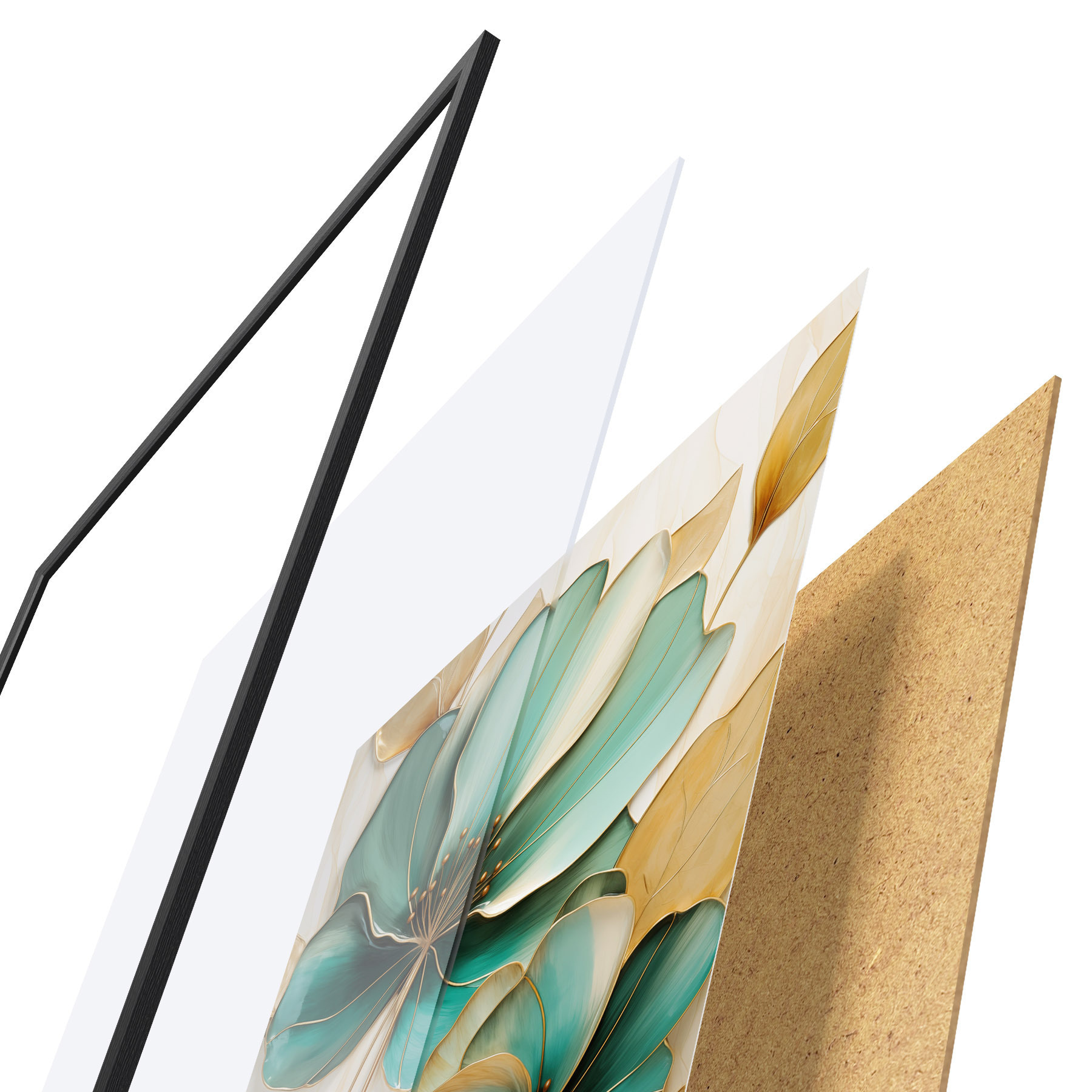 L’affiche encadrée est composée d’un cadre, d’un plexiglas, d’une image imprimée et d’un support en aggloméré. Elle est prête à être accrochée au mur grâce aux fixations situées à l’arrière.
