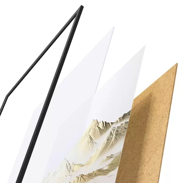 L’affiche encadrée est composée d’un cadre, d’un plexiglas, d’une image imprimée et d’un support en aggloméré. Elle est prête à être accrochée au mur grâce aux fixations situées à l’arrière.
