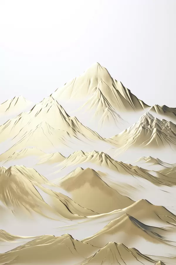 Poster Un paysage de montagnes jaunes enneigées aux pics acérés et aux vallées profondes sous un ciel clair. f47421