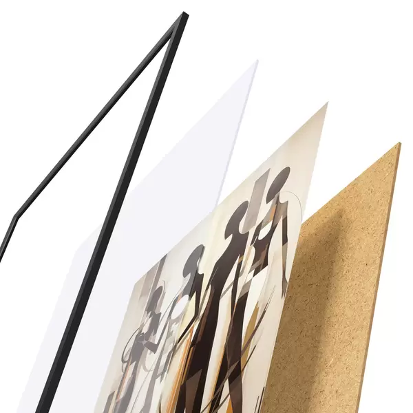 L’affiche encadrée est composée d’un cadre, d’un plexiglas, d’une image imprimée et d’un support en aggloméré. Elle est prête à être accrochée au mur grâce aux fixations situées à l’arrière.