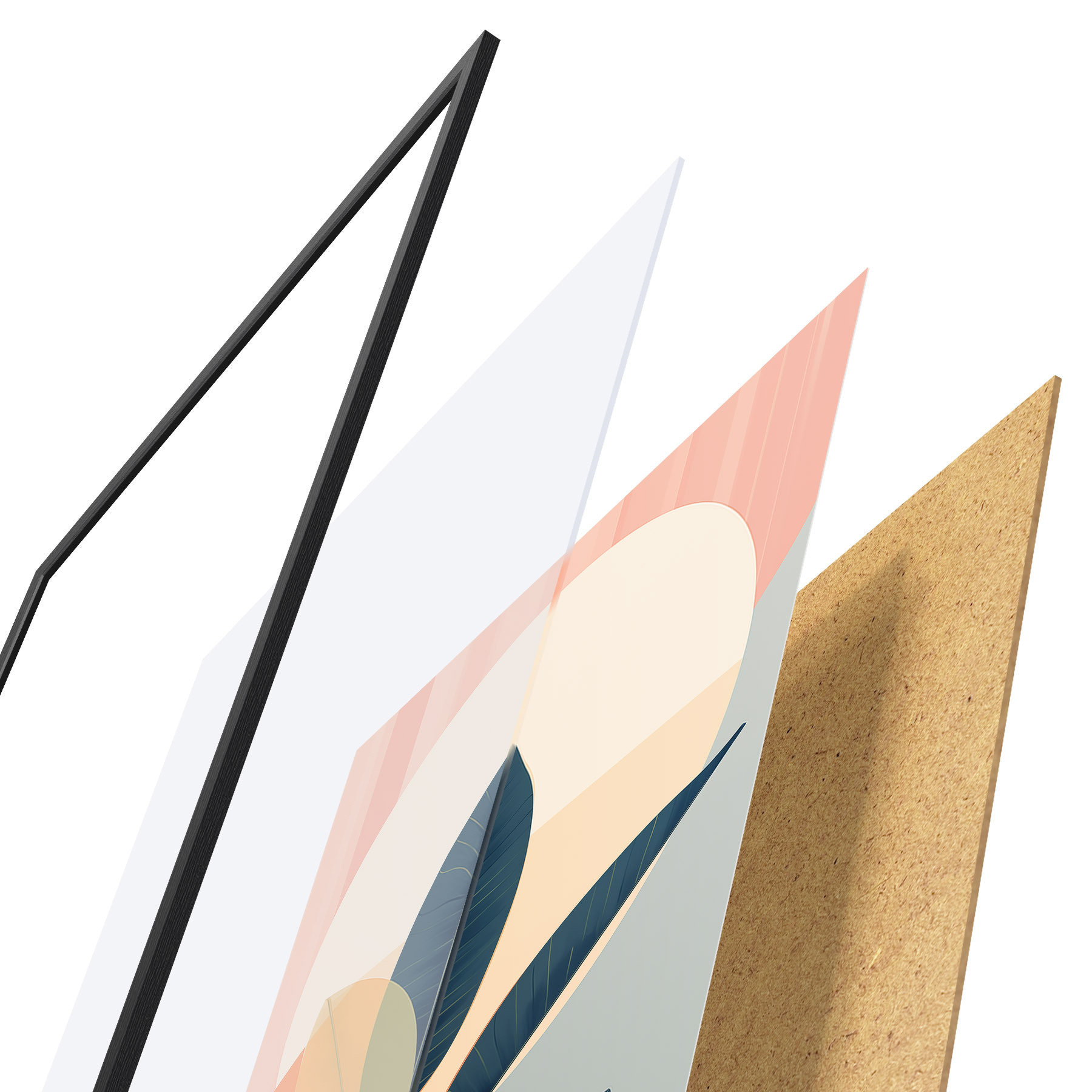 L’affiche encadrée est composée d’un cadre, d’un plexiglas, d’une image imprimée et d’un support en aggloméré. Elle est prête à être accrochée au mur grâce aux fixations situées à l’arrière.