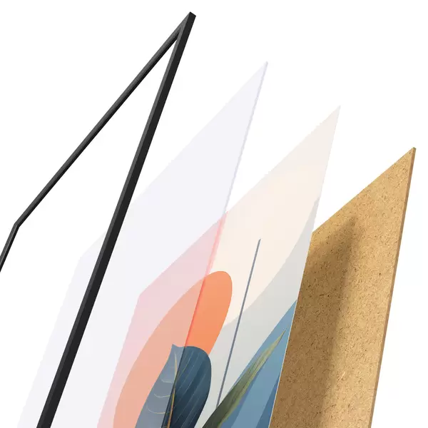 L’affiche encadrée est composée d’un cadre, d’un plexiglas, d’une image imprimée et d’un support en aggloméré. Elle est prête à être accrochée au mur grâce aux fixations situées à l’arrière.