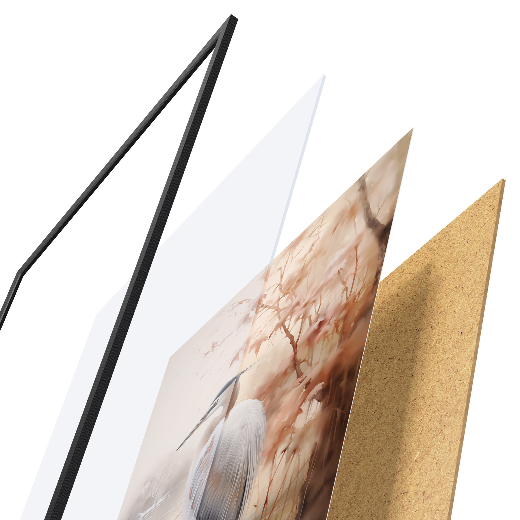 L’affiche encadrée est composée d’un cadre, d’un plexiglas, d’une image imprimée et d’un support en aggloméré. Elle est prête à être accrochée au mur grâce aux fixations situées à l’arrière.