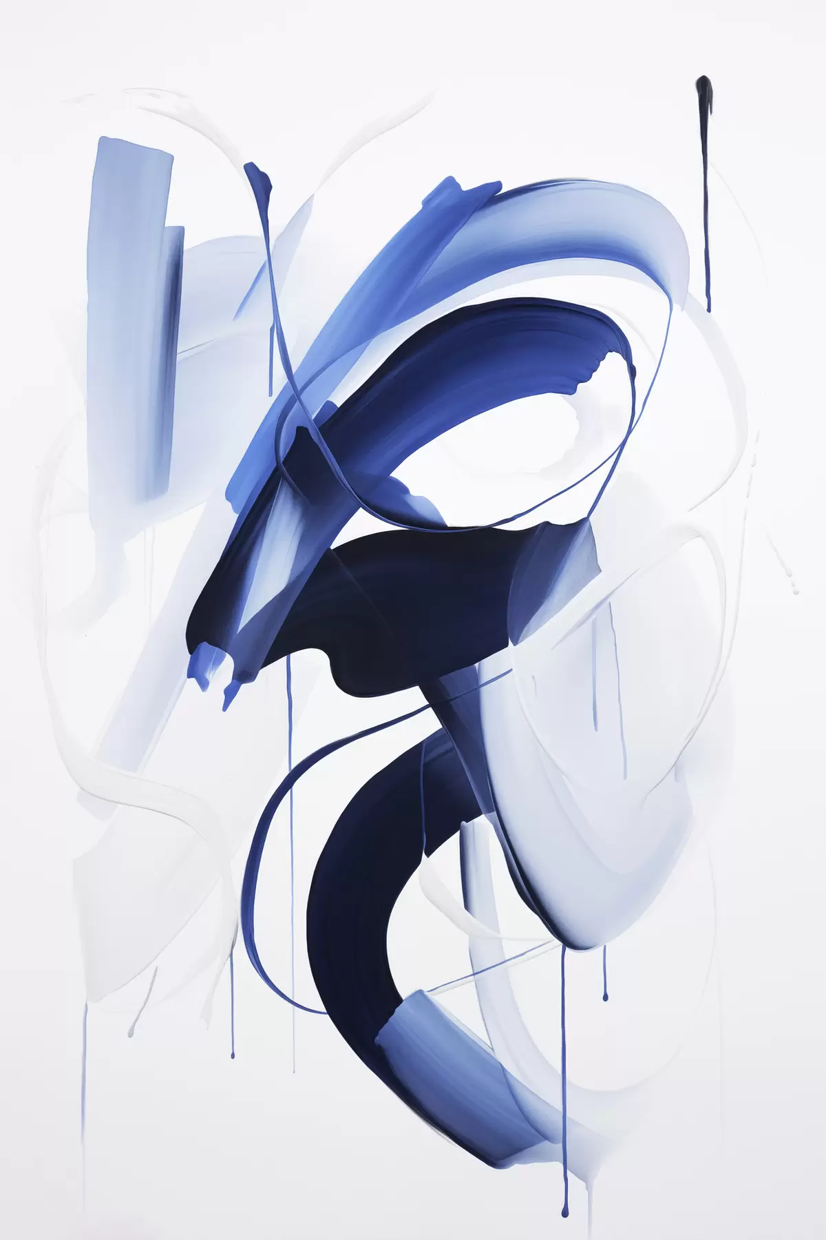Poster Formes abstraites bleues ressemblant à des coups de pinceau, avec des lignes et des courbes fluides sur fond blanc, art moderne. Nr f47428