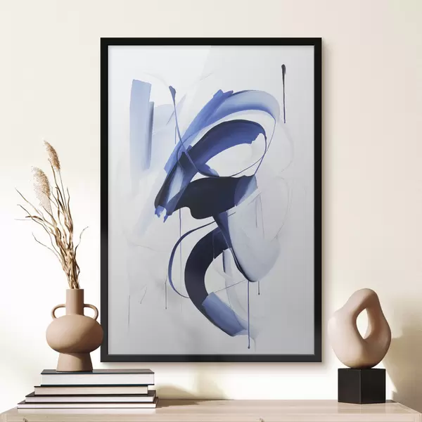 Poster Formes abstraites bleues ressemblant à des coups de pinceau, avec des lignes et des courbes fluides sur fond blanc, art moderne. f47428