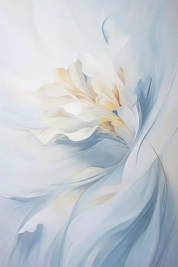 Poster Résumé : pétales délicats et translucides tourbillonnant vers l'intérieur, avec un éclairage doux et une texture picturale. f47436