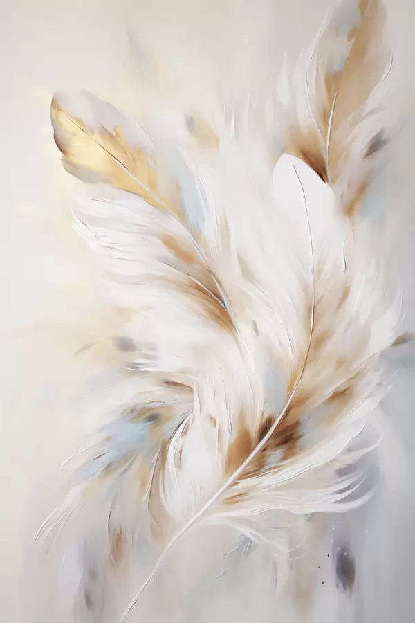 Poster Grandes plumes douces aux teintes blanches, jaunes et brunes, sur un fond clair et abstrait. Nr f47442