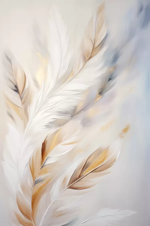 Poster Grandes plumes douces aux teintes blanches, jaunes et brunes, sur un fond clair et abstrait. Nr f47443