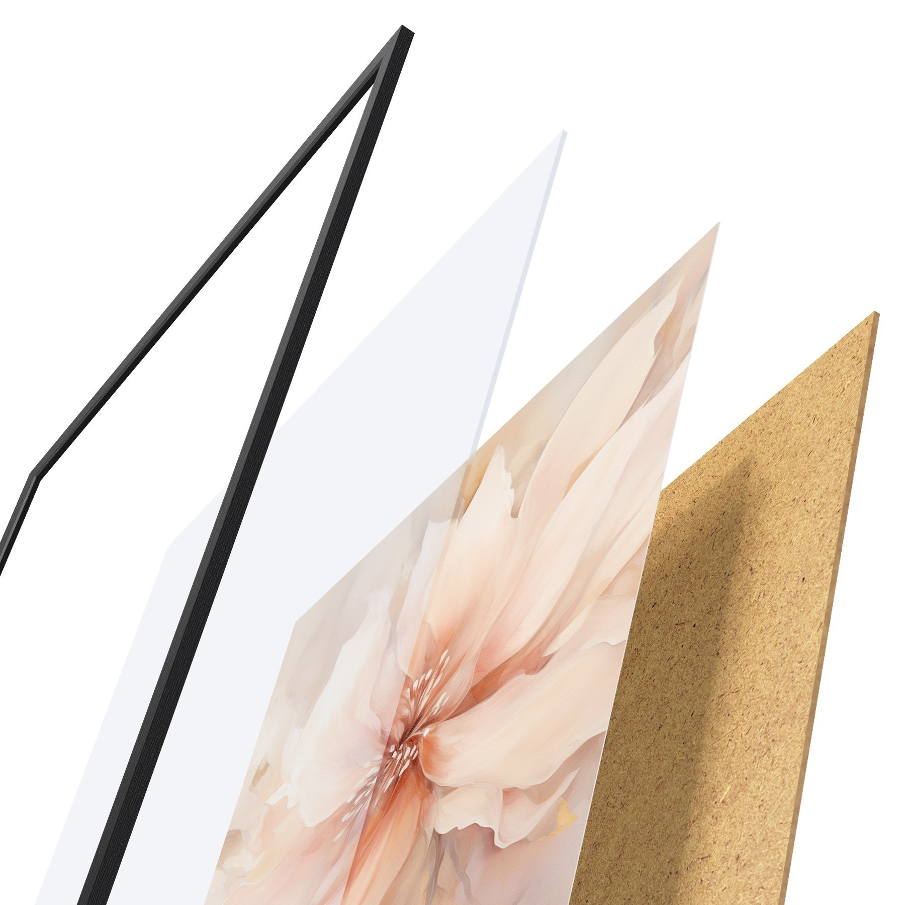 L’affiche encadrée est composée d’un cadre, d’un plexiglas, d’une image imprimée et d’un support en aggloméré. Elle est prête à être accrochée au mur grâce aux fixations situées à l’arrière.