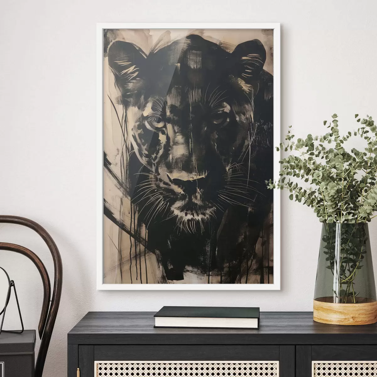L’affiche encadrée est composée d’un cadre, d’un plexiglas, d’une image imprimée et d’un support en aggloméré. Elle est prête à être accrochée au mur grâce aux fixations situées à l’arrière.