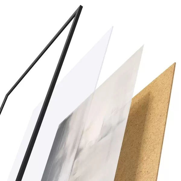 L’affiche encadrée est composée d’un cadre, d’un plexiglas, d’une image imprimée et d’un support en aggloméré. Elle est prête à être accrochée au mur grâce aux fixations situées à l’arrière.