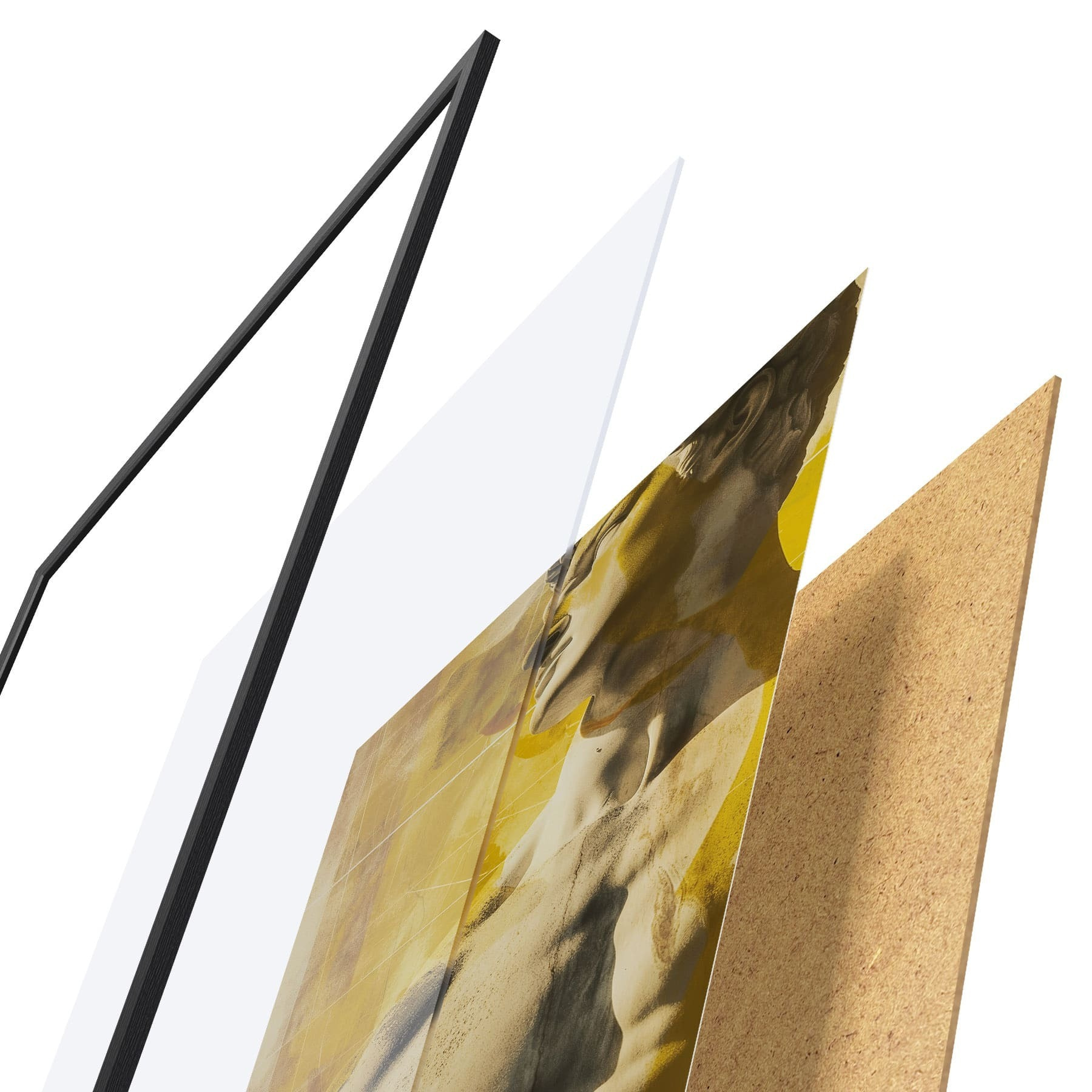 L’affiche encadrée est composée d’un cadre, d’un plexiglas, d’une image imprimée et d’un support en aggloméré. Elle est prête à être accrochée au mur grâce aux fixations situées à l’arrière.