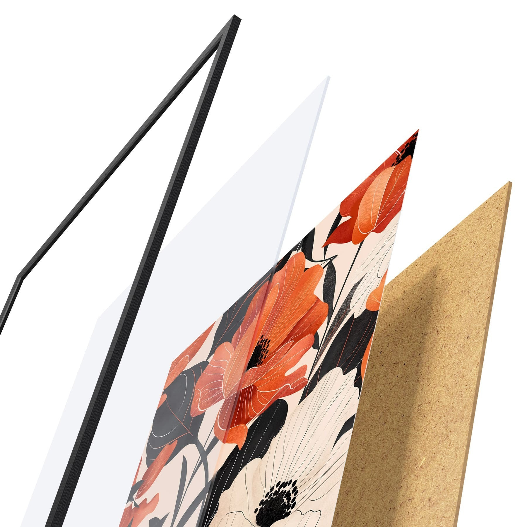 L’affiche encadrée est composée d’un cadre, d’un plexiglas, d’une image imprimée et d’un support en aggloméré. Elle est prête à être accrochée au mur grâce aux fixations situées à l’arrière.