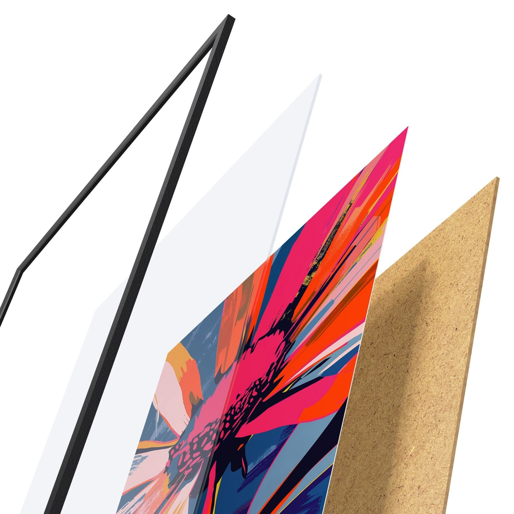 L’affiche encadrée est composée d’un cadre, d’un plexiglas, d’une image imprimée et d’un support en aggloméré. Elle est prête à être accrochée au mur grâce aux fixations situées à l’arrière.