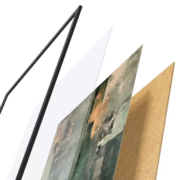 L’affiche encadrée est composée d’un cadre, d’un plexiglas, d’une image imprimée et d’un support en aggloméré. Elle est prête à être accrochée au mur grâce aux fixations situées à l’arrière.