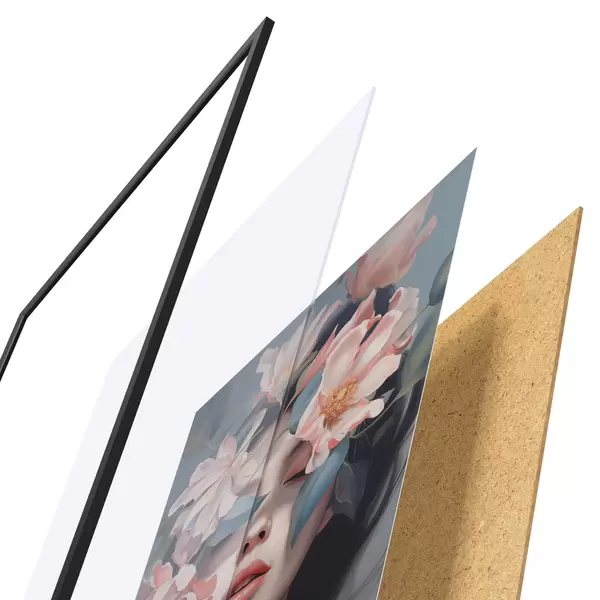 L’affiche encadrée est composée d’un cadre, d’un plexiglas, d’une image imprimée et d’un support en aggloméré. Elle est prête à être accrochée au mur grâce aux fixations situées à l’arrière.