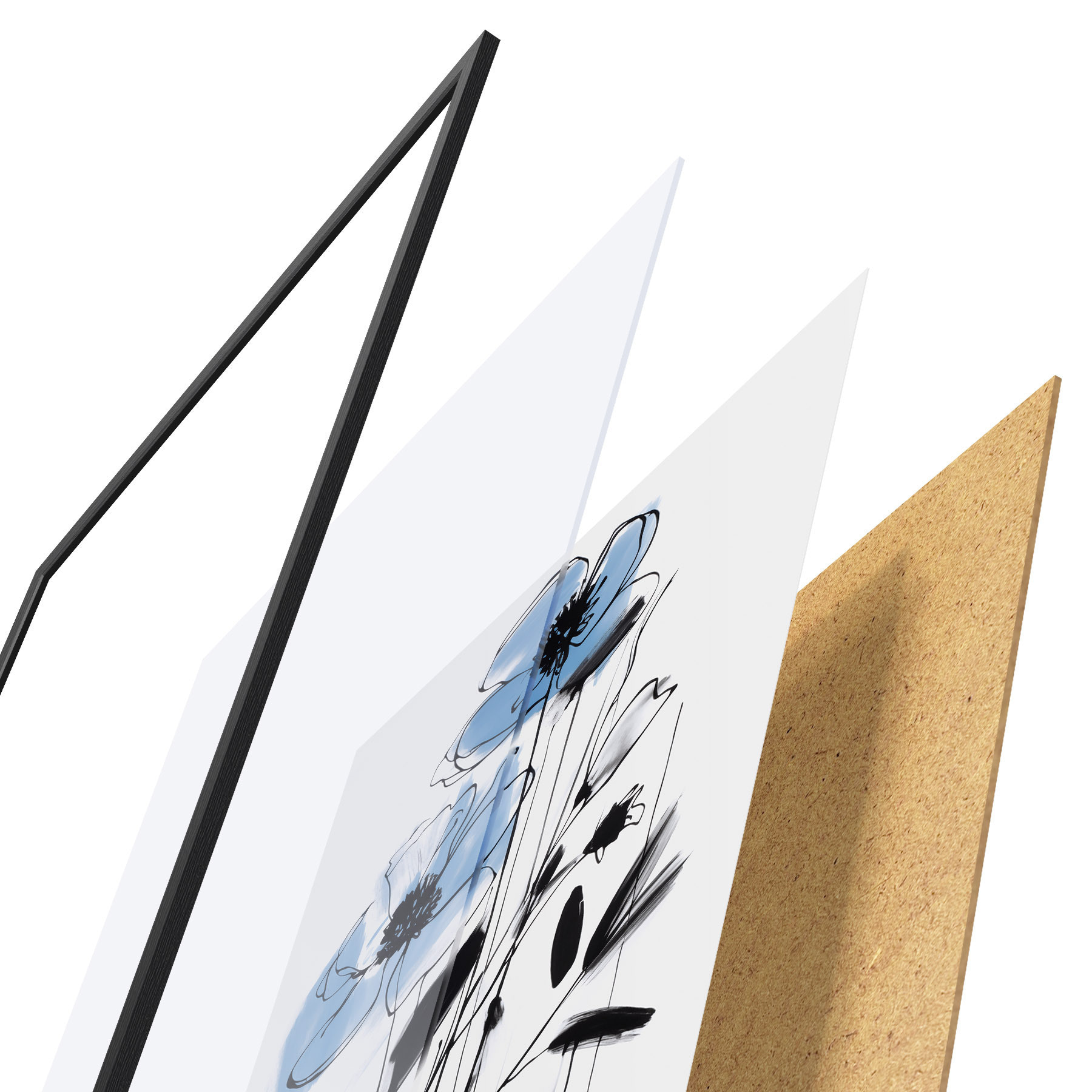 L’affiche encadrée est composée d’un cadre, d’un plexiglas, d’une image imprimée et d’un support en aggloméré. Elle est prête à être accrochée au mur grâce aux fixations situées à l’arrière.