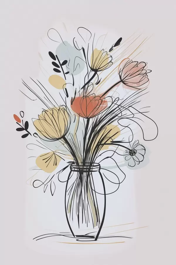 Poster Fleurs dans un vase imitation d'un dessin Nr f47494